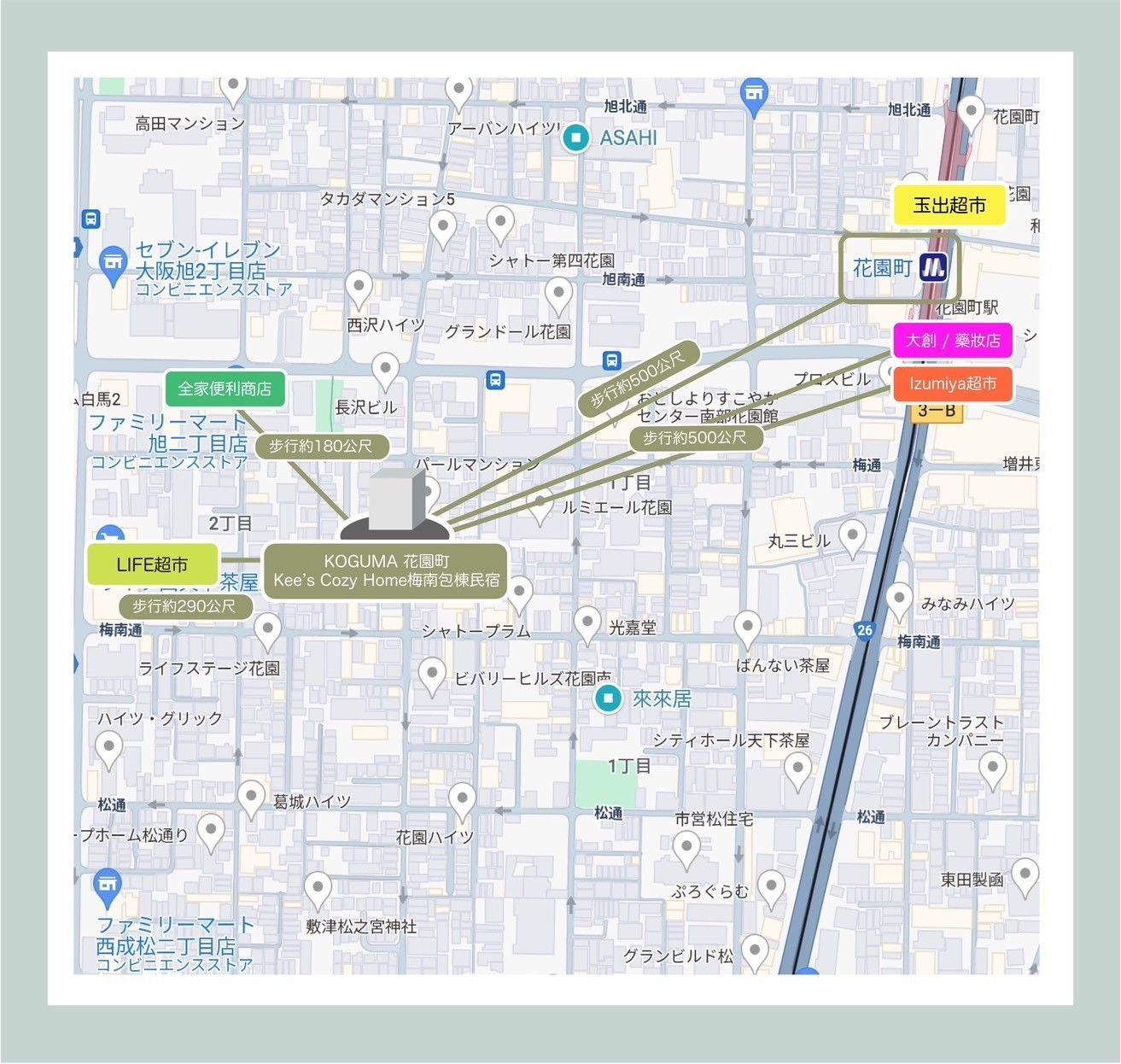 🚉距離 花園町(四つ橋線) 步行6分鐘